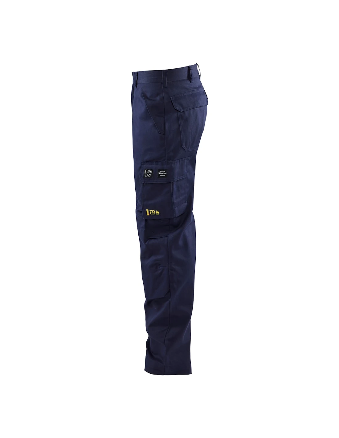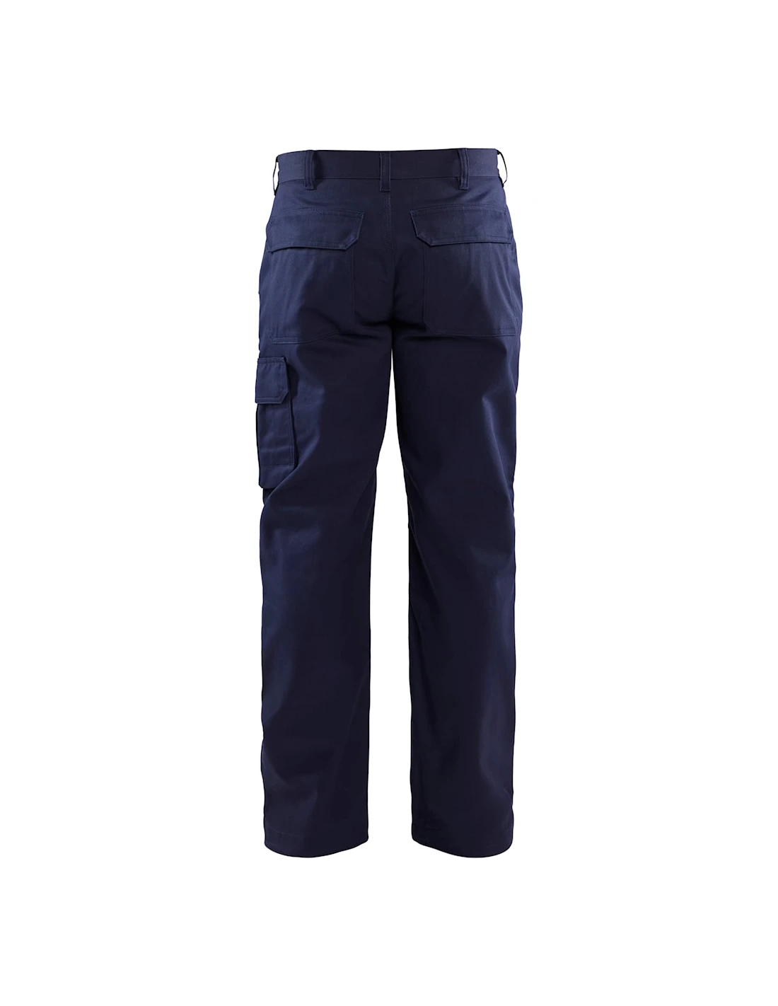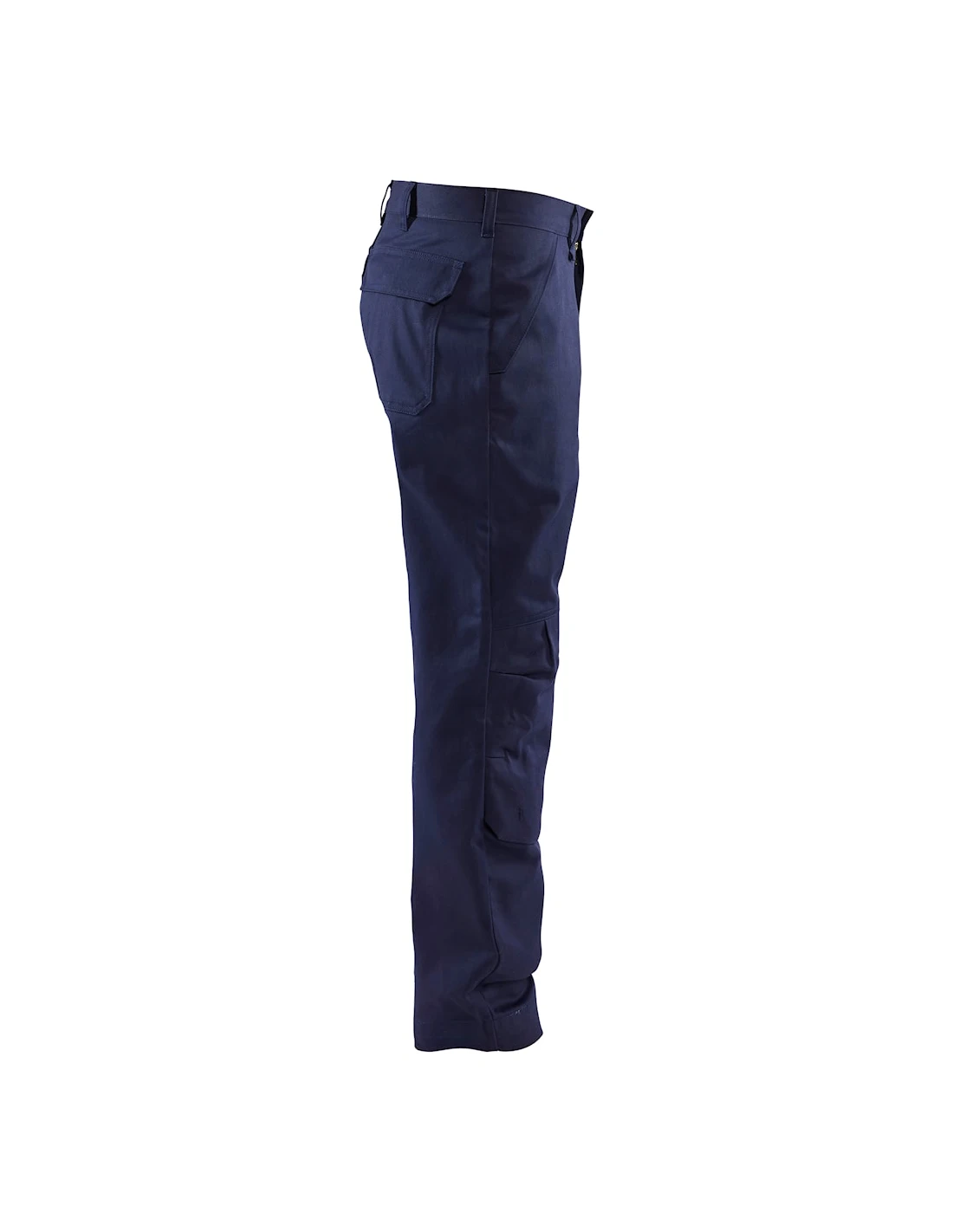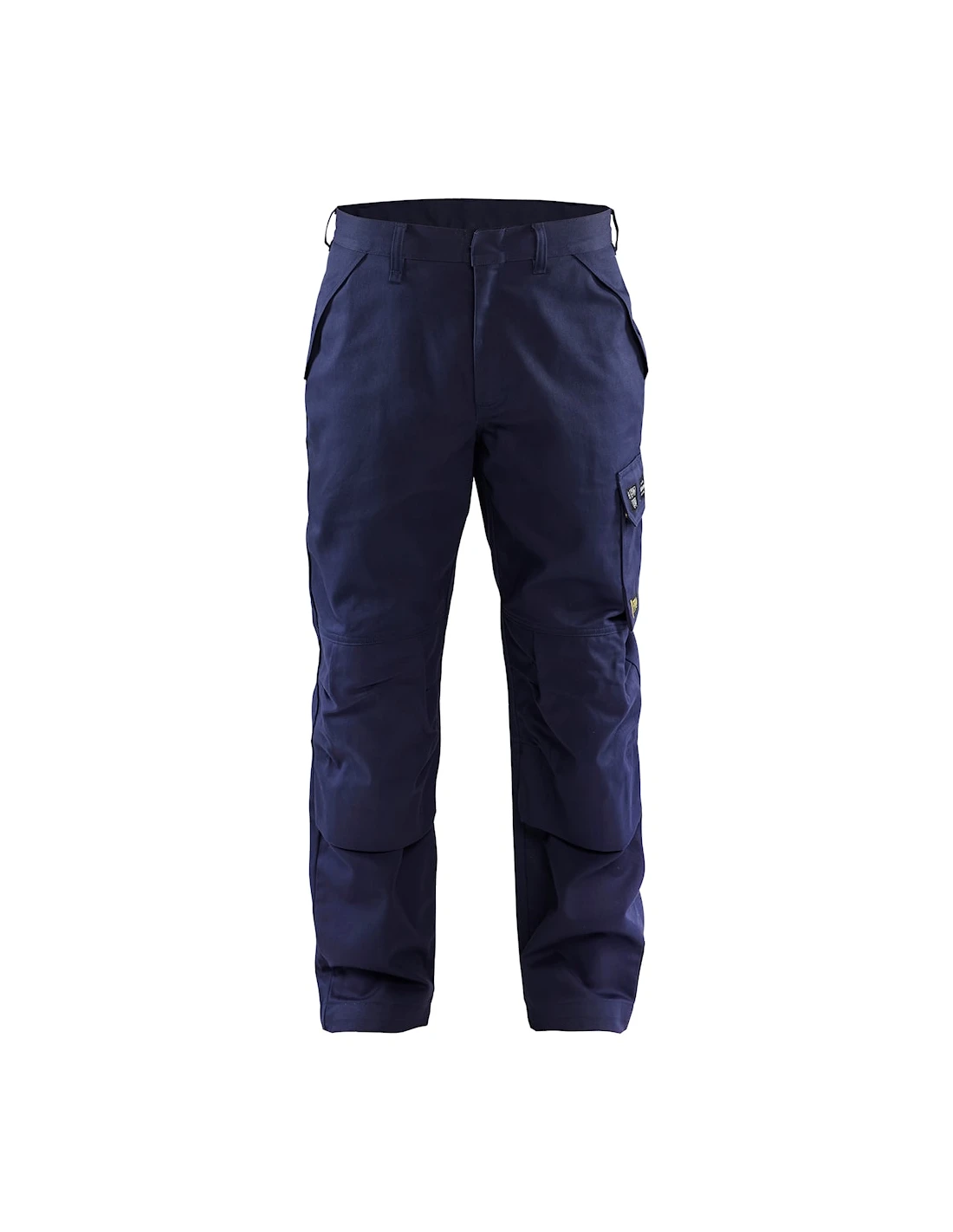 Pantalón de trabajo Ignífugo , firmado Blaklader repelente al agua, aceite y suciedad . Bolsillo de pierna con refuerzo, solapa y bolsillo de 3 secciones para bolígrafo .Bolsillos delanteros con solapa y bolsillos exteriores para rodilleras .Dobladillo extensible