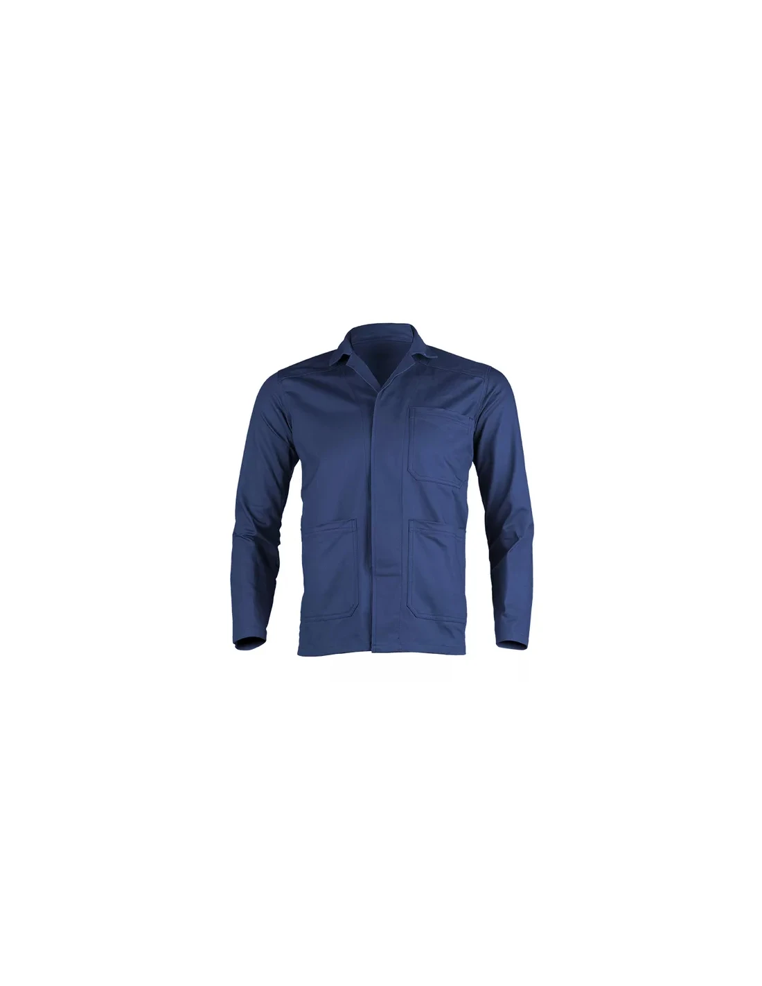 La chaqueta de trabajo multibolsillos Industry, firmada por Coverguard, está fabricada en poliéster algodón, de color azul. Cuenta con cuello tipo sastre con botones cosidos bajo la solapa.