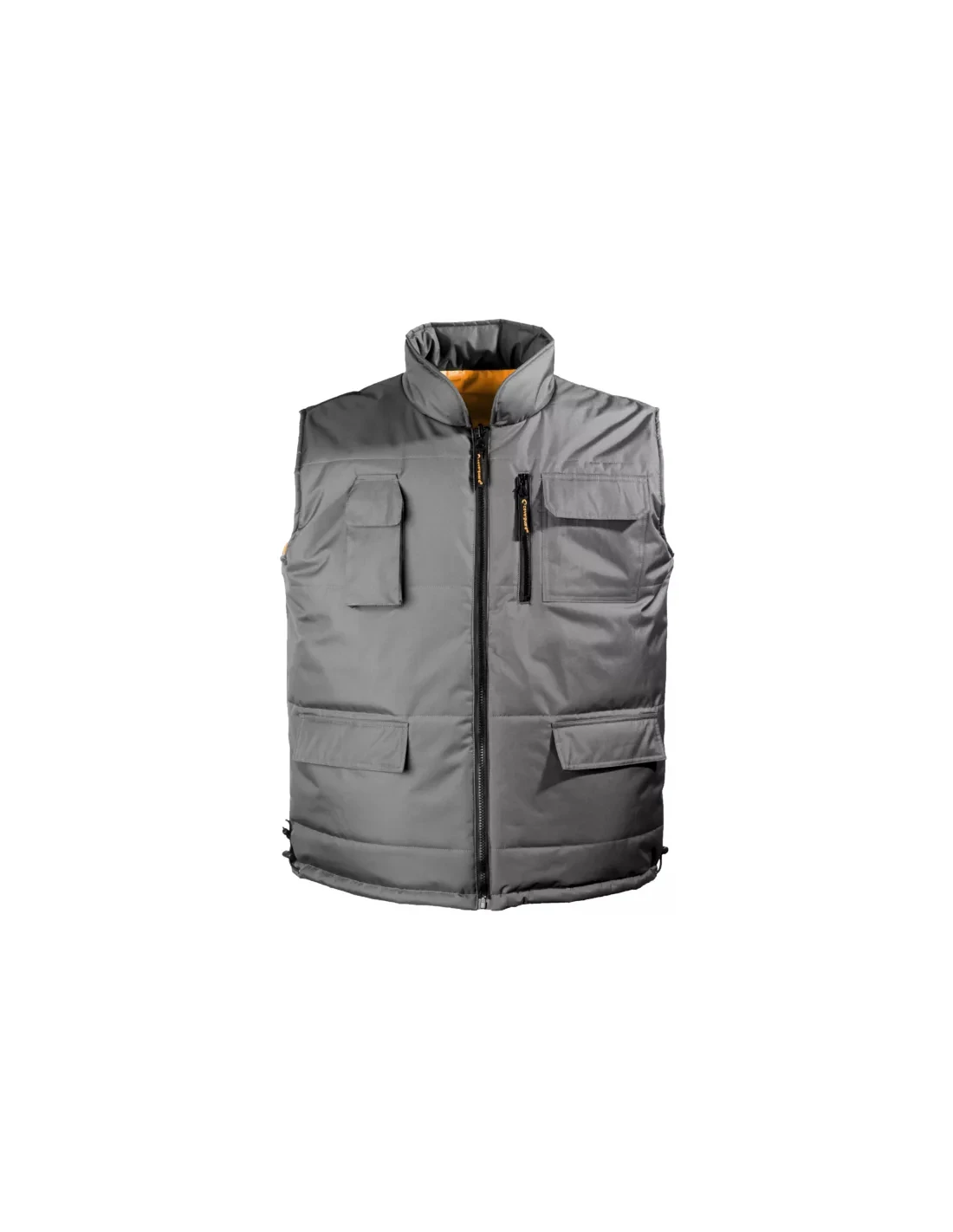 El chaleco frío Hi-Way 7HWGO de Coverguard es una prenda profesional reversible y extremadamente funcional, ideal para quienes trabajan en sectores como la construcción, la logística o los servicios y requieren alta visibilidad. El lado principal está fabricado en tejido Oxford 100 % poliéster revestido de poliuretano, mientras que el lado interior es de pongee 100 % poliéster revestido de PVC, garantizando protección y versatilidad en diversas condiciones operativas. La seguridad está asegurada por bandas retroreflectantes de microperlas cosidas que rodean el pecho y los hombros, conforme a las normativas para prendas de alta visibilidad. El diseño presenta un cuello oficial y un cierre central con cremallera, con una parte inferior regulable mediante ajuste para un ajuste óptimo. Ambos lados del chaleco están equipados con numerosos bolsillos prácticos, incluidos dos bolsillos bajos con solapa y velcro, un bolsillo en el pecho con cremallera y un compartimento dedicado para el teléfono. El relleno interior en 100 % poliéster ofrece el calor necesario durante las actividades al aire libre en los periodos más fríos. Este equipo de protección individual combina robustez y practicidad, permitiendo al usuario pasar rápidamente de una configuración de alta visibilidad a una más sobria sin renunciar a la protección térmica.