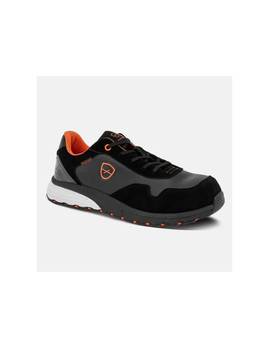 Sneakers de seguridad Skater S3 ligeras y flexibles ideales para industria construcción logística y comercio. Empeine de microfibra hidrófuga y piel serraje con forro de tejido transpirable. Suela de goma y EVA antideslizante SRC y resistente al calor HRO hasta 300°C con plantilla de espuma de poliuretano de 8 mm para mayor confort. Calzado no magnético diseñado para garantizar libertad de movimiento y protección.