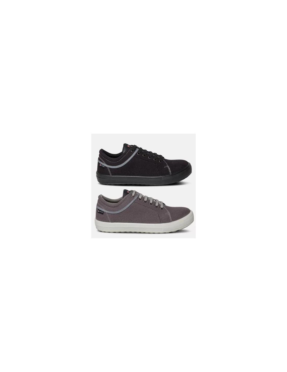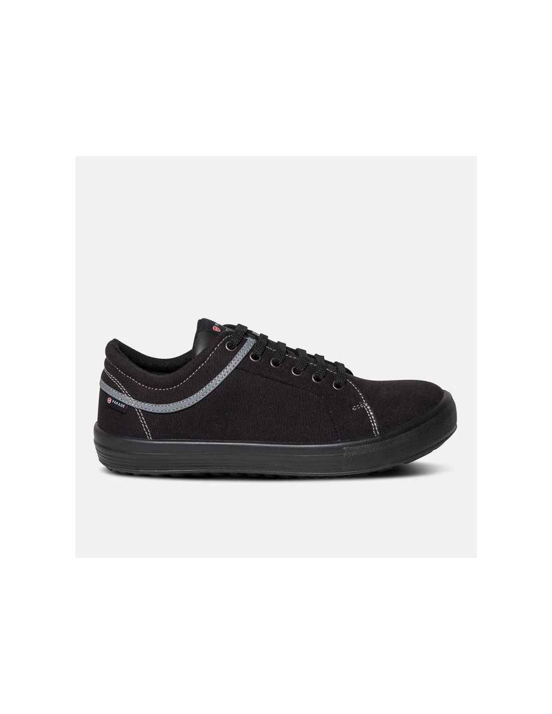 Zapatos de seguridad bajos de la marca Parade con empeine de lona puntera de acero y plantilla antiperforación no metálica suela de poliuretano de doble densidad plantilla interior de espuma EVA extraíble. Normativa S1P SRC.